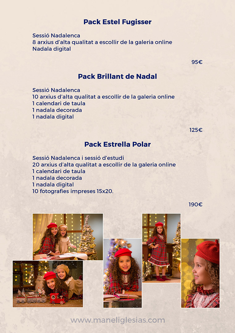 Reserva la teva sessió trucant al 938 38 00 05. Estarem encantats d'atendre't i ajudar-te a preparar la teva sessió de fotos de Nadal!